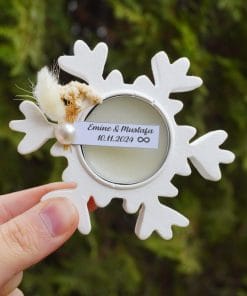 Kar Tanesi Temalı Döküm Hediyelik, dayanıklı taş tozu malzeme kullanılarak üretilmiş ve şıklığı ile göz dolduruyor. Cipso çiçekleri ve pamuk otu ile zarifçe süslenmiş bu hediye, kişiye özel etiketle birlikte gönderiliyor. Ayrıca, Tealight ile birlikte gönderilerek hem dekoratif hem de atmosfer yaratıcı bir hediye deneyimi sunuyor.