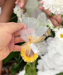 Doğal güzellik ve zarafeti bir arada sunan Tül ile Süslenmiş Ay Çiçeği Mum, özel günlerin vazgeçilmezi.